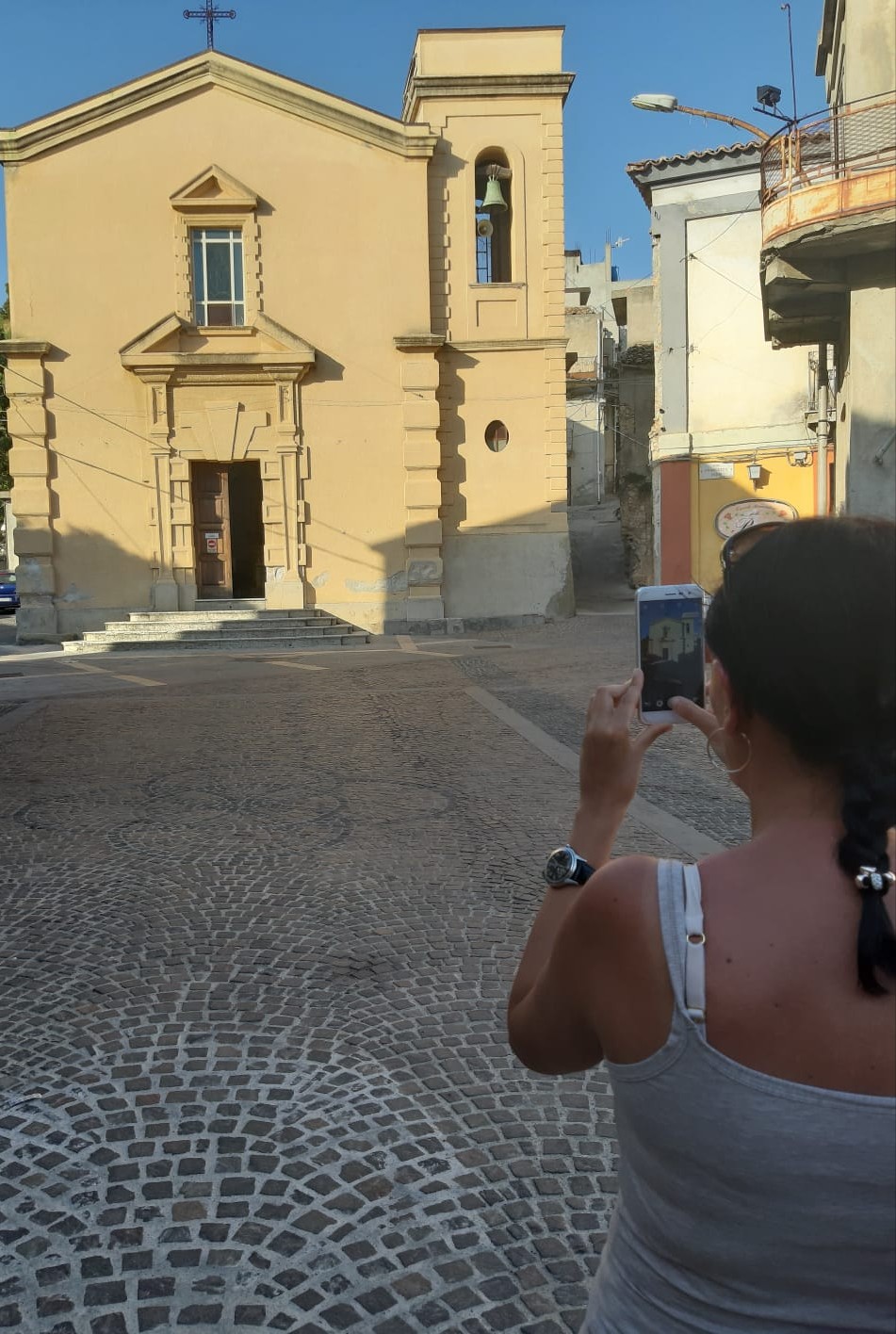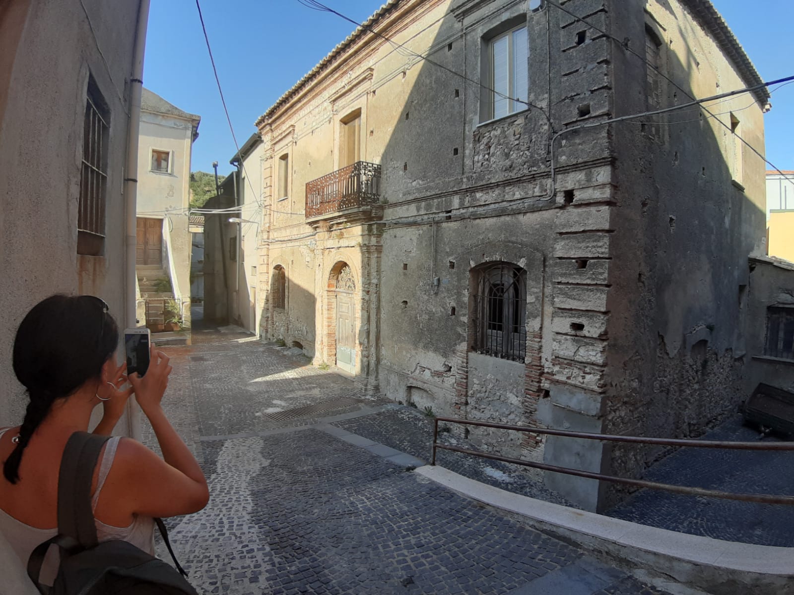 Le strade erano semi deserte, vedemmo qualcuno davanti al bar del paese o seduto al riparo dalla calura estiva davanti al ciglio di casa. La maggior parte della case davano però l’impressione di essere chiuse da parecchio tempo; purtroppo in Calabria l’occhio si abitua troppo facilmente a riconoscere quei portoni le cui soglie non venivano varcate da anni.